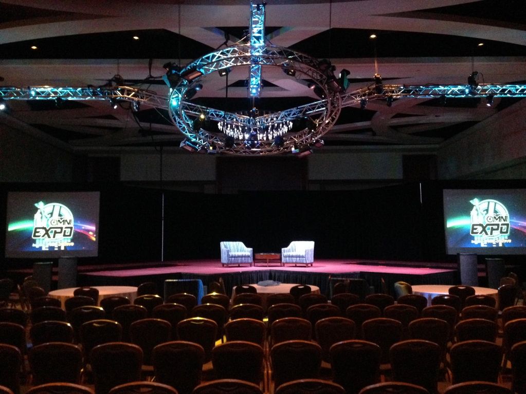 Fan Based events are where I began, and are always fun to do. They are a more relaxed atmosphere that the corporate and association meetings, and usually allow for some designs and unusual sets, like this floating "power button" truss from Omni Expo 2014.